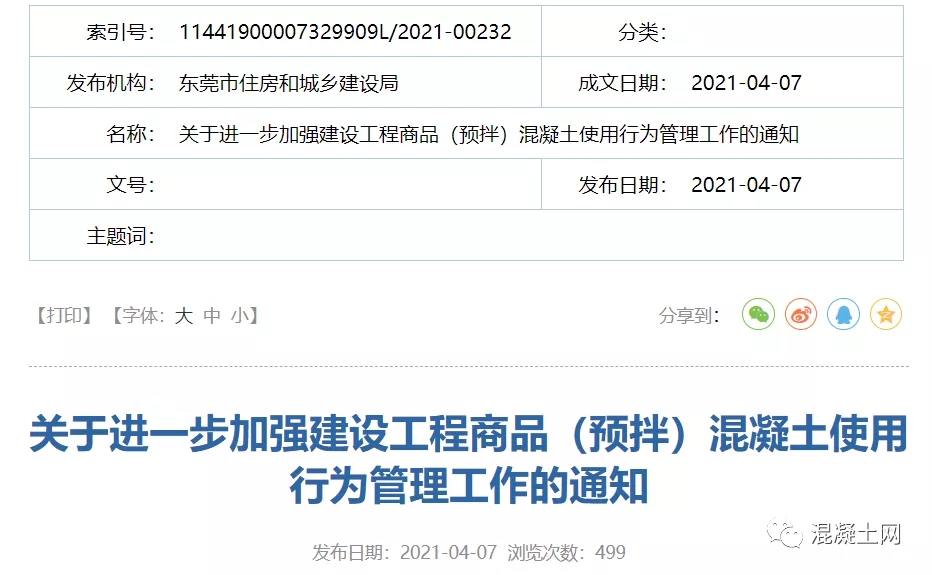 關于進一步加強建設工程商品(預拌)混凝土使用行為管理工作的通知