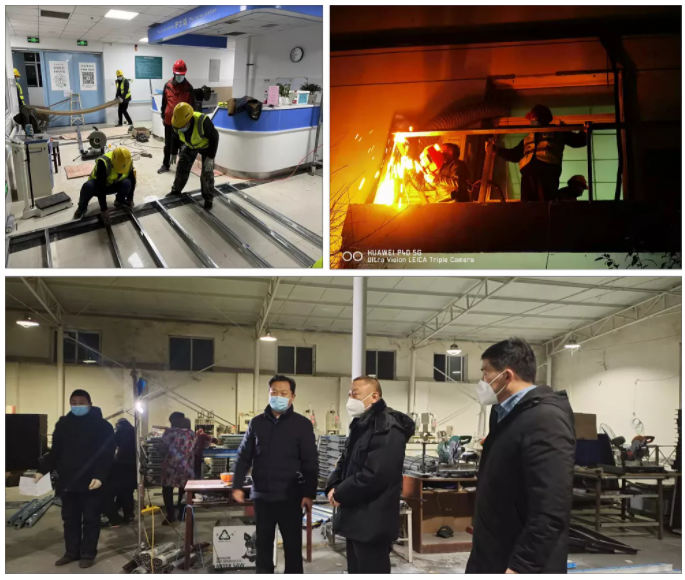 突擊隊克服疫情、交通管制、多點施工不便統籌等影響,多方協調、緊急調配人員和物質,合理分工迅速鋪開作業面,科學指導工人作業,連夜快速組織實施,各工種穿插作業順利銜接,嚴控施工質量。12日13點開始轉戰四個“戰”場,行政樓、1號、2號病房樓及綜合樓,專家組過程研判中,不斷提高標準,追加改造部位,及時按標準調整組織。