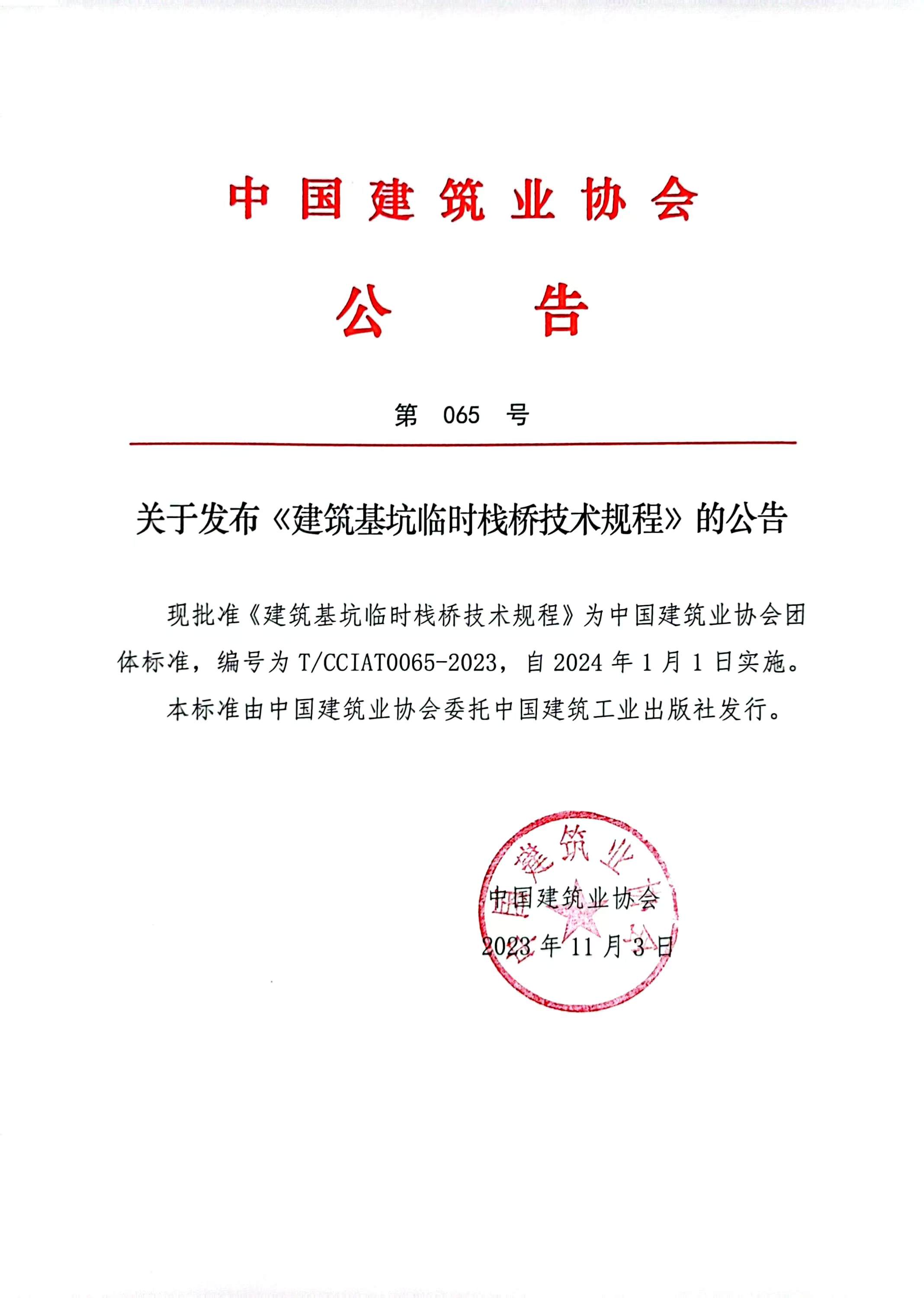 關于發布《建筑基坑臨時棧橋技術規程》的公告