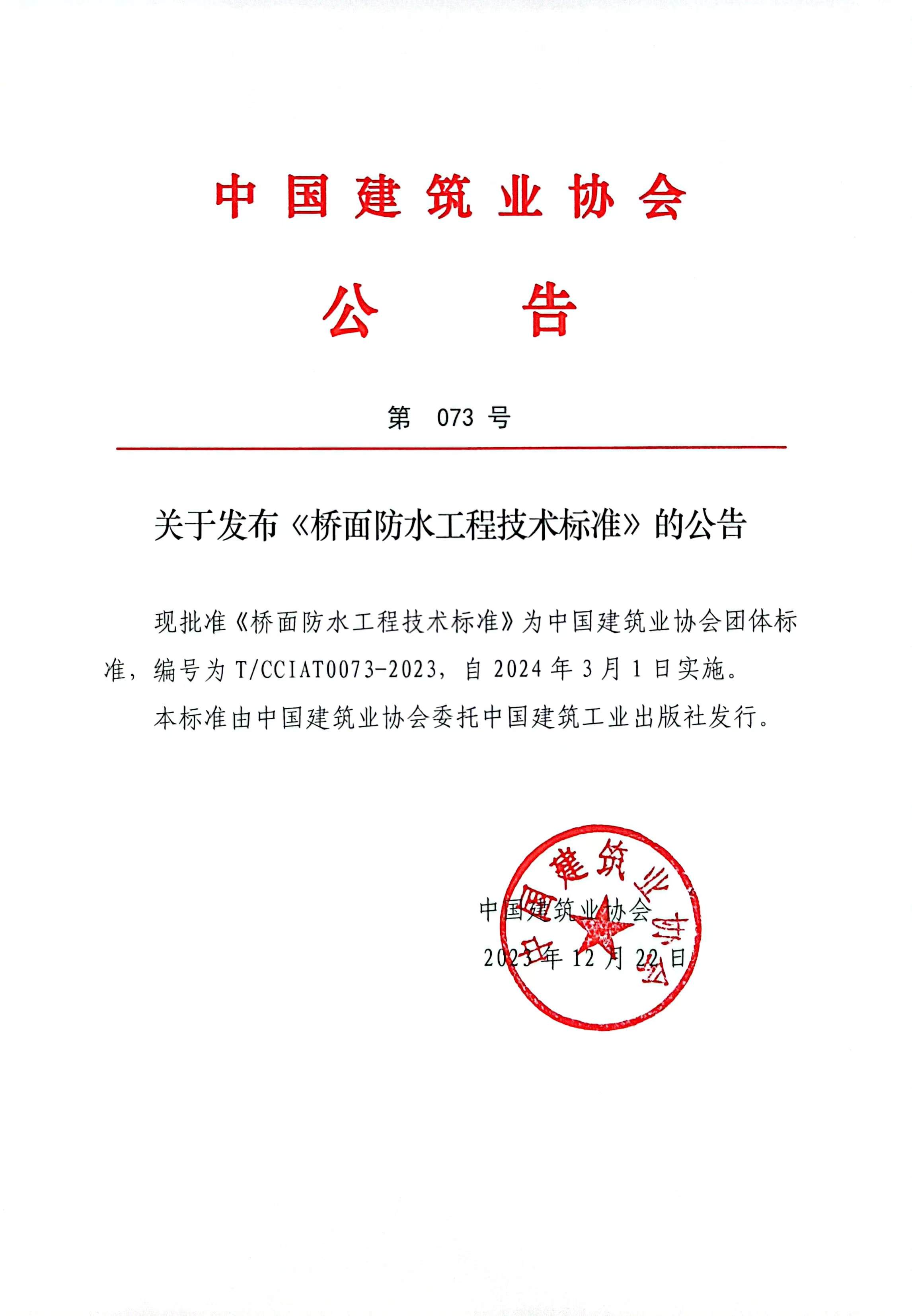關于發(fā)布《橋面防水工程技術標準》的公告