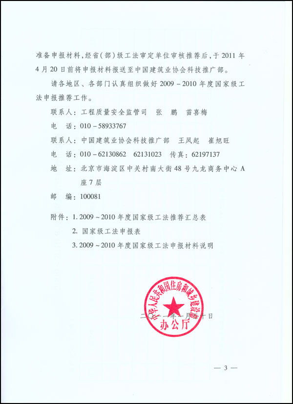 附件1:2009~2010年度國家級(jí)工法推薦匯總表