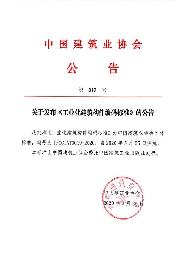 關于發(fā)布《工業(yè)化建筑構(gòu)件編碼標準》的公告