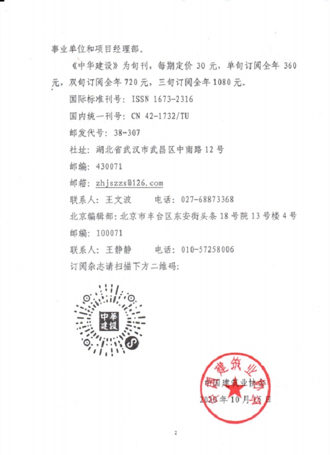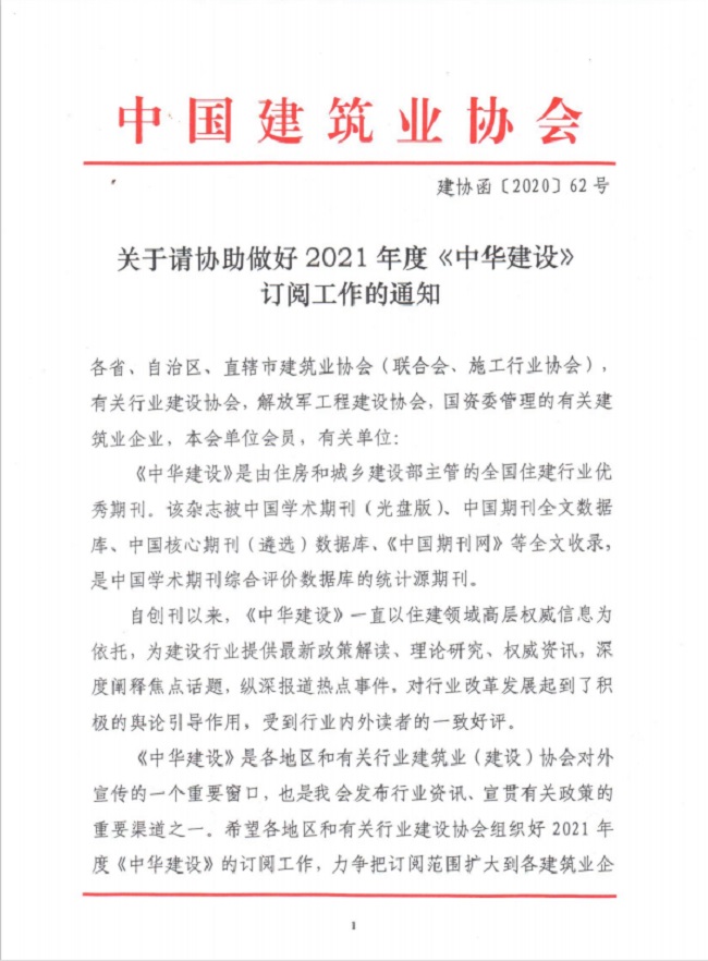 關于請協助做好2021年度《中華建設》 訂閱工作的通知