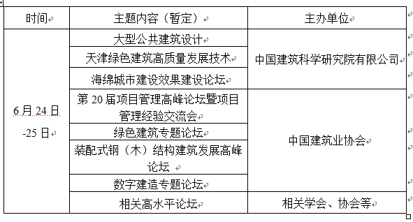 2021年6月24日,展會將舉辦首展開幕式及中國建筑科學(xué)大會,大會圍繞建筑行業(yè)科技創(chuàng)新,探索行業(yè)發(fā)展方向及趨勢等相關(guān)議題進(jìn)行交流,設(shè)1個(gè)主論壇和若干 個(gè)分論壇。大會議程如下(暫定):