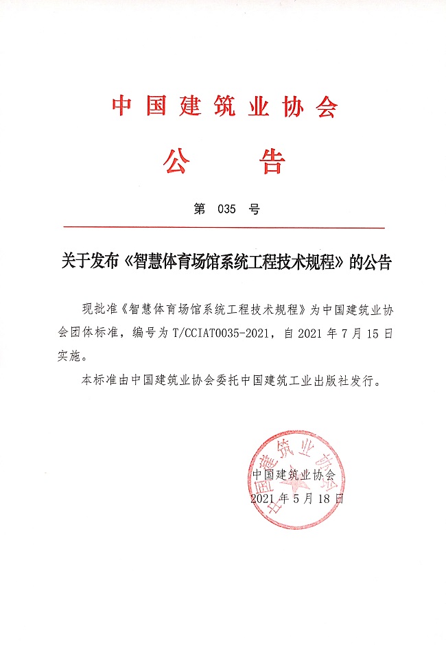 關于發布《智慧體育場館系統工程技術規程》的公告