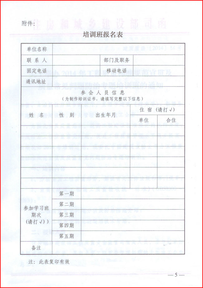 附件:關于舉辦2014年工程質量標準規范宣貫及質量常見問題防治專題培訓班的通知