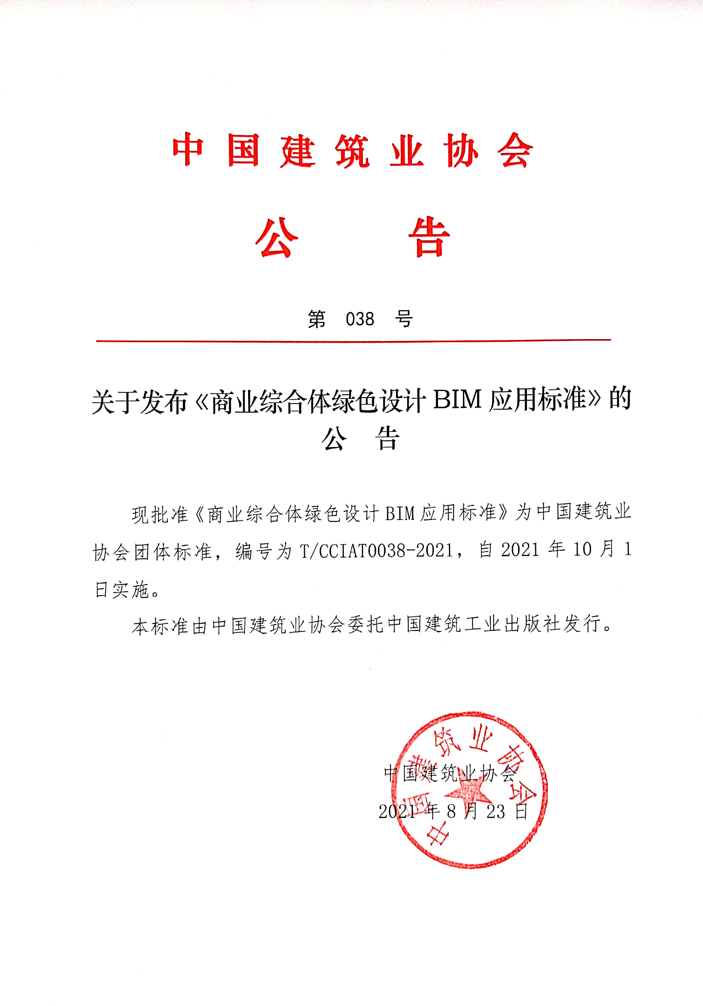 關于發(fā)布《商業(yè)綜合體綠色設計BIM應用標準》的公告