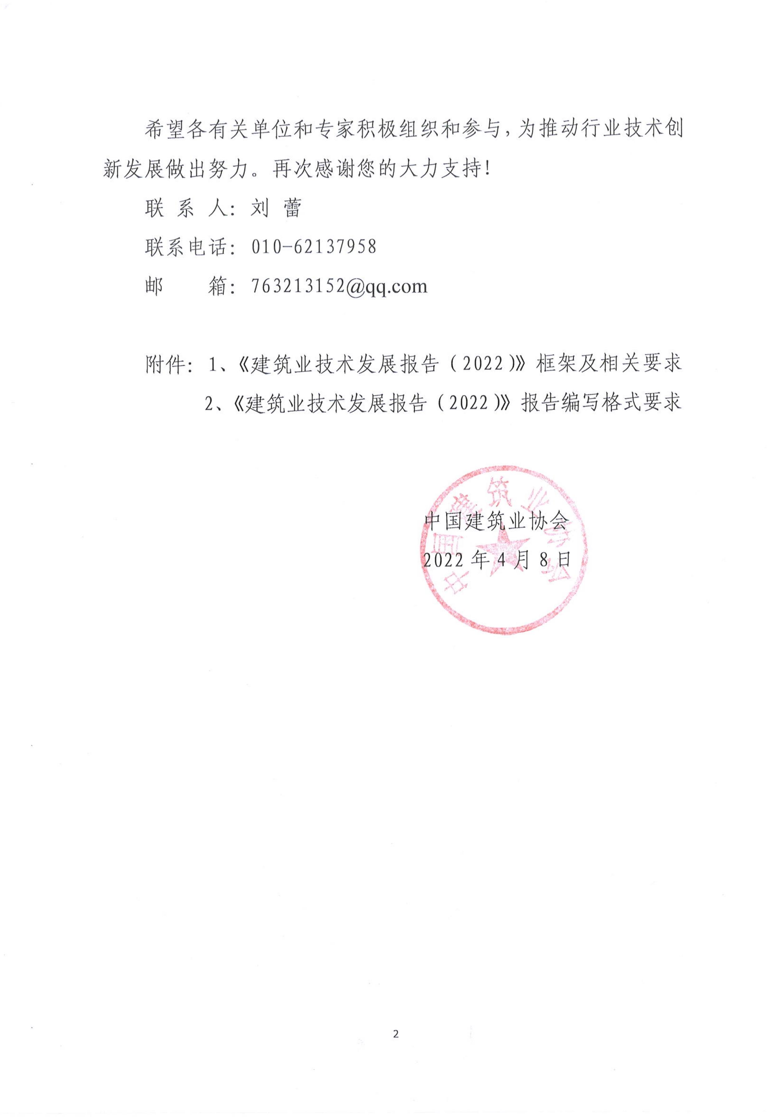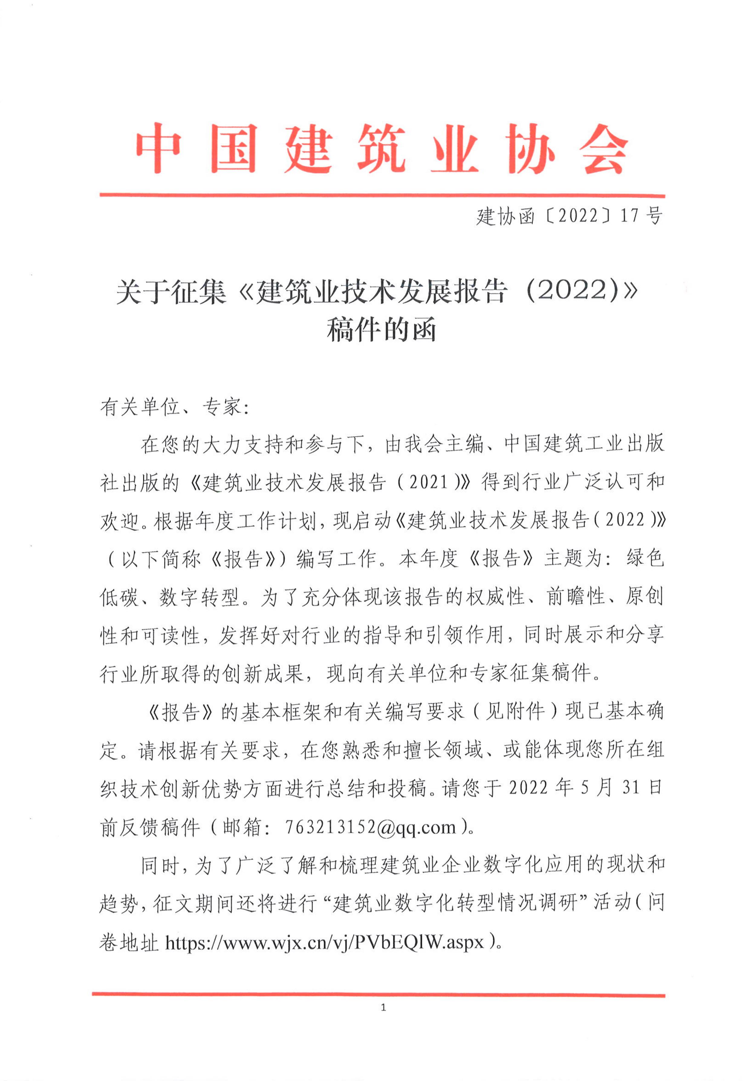 關于征集《建筑業技術發展報告(2022)》稿件的函