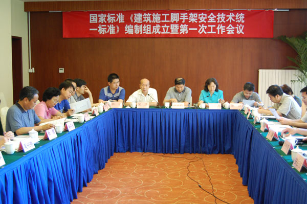 2011年6月8日,國家標準《建筑施工腳手架安全技術統一標準》編寫工作第一次會議在北京召開。住房城鄉建設部標準定額司副司長田國民、中國建筑業協會副會長兼秘書長吳濤出席會議并講話,各主編、參編單位代表近40人參加會議。會議由部標準定額司處長王果英主持。會上,成立了《建筑施工腳手架安全技術統一標準》編制組,并就《標準》的制訂籌備情況及編寫大綱進行了充分的交流和討論。