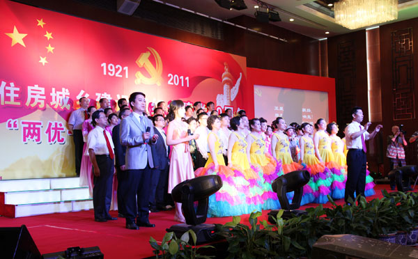九十年風雨歷程,九十載光輝歲月。為紀念中國共產黨成立90周年,2011年6月21日,住房城鄉建設部在北京隆重召開紀念建黨90周年“兩優一先”表彰大會暨文藝演出。部機關及部直屬事業單位450名干部職工歡聚一堂,追憶紅色歷史,抒發愛國情懷,用嘹亮的歌聲和卓越的工作業績向黨的生日獻禮。