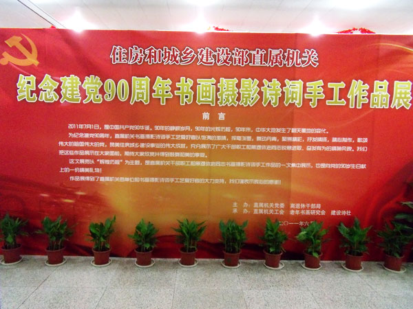 為慶祝中國共產黨90華誕,6月24日,住房城鄉建設部“輝煌歷程”書畫攝影詩詞手工作品展隆重開展。部機關、直屬事業單位、部屬社團和離退休老同志以飽滿的激情,揮毫潑墨,舞動丹青,聚焦精彩,精心制作了幾百幅作品,描繪了祖國的大好河山,謳歌了黨的英明領導,展示了建設戰線廣大職工銳意進取、奮發有為的精神風貌。