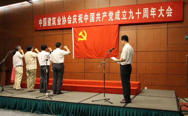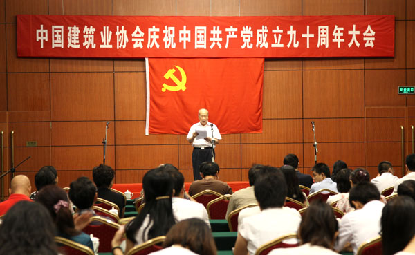 2011年6月29日,中國建筑業協會在北京隆重召開中國共產黨成立90周年慶祝大會,歌頌中國共產黨90年來的豐功偉績,表達協會職工熱愛黨、熱愛祖國的滿腔情懷和加強協會黨組織建設的決心。副會長徐義屏、副會長兼秘書長吳濤與協會秘書處及各分支機構近兩百名職工參加大會。社團一黨委有關同志應邀出席。