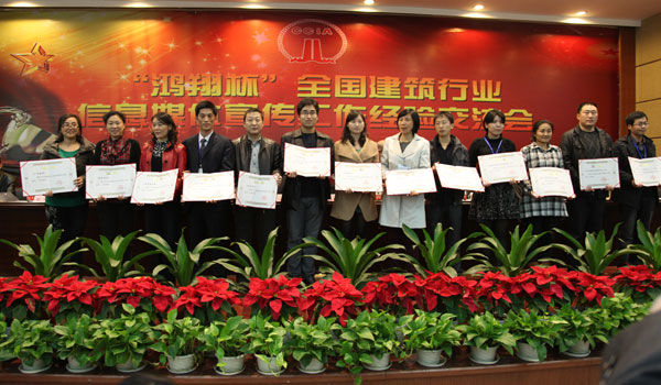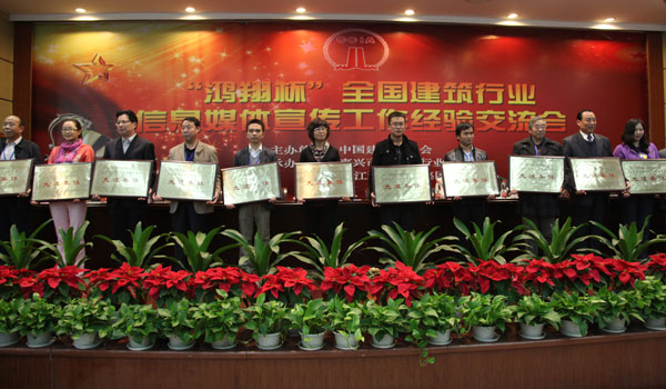頒獎大會上,中國建筑業協會信息傳媒部王秀蘭主任介紹了此次全國建筑行業信息媒體經驗交流活動和“鴻翔杯”全國建筑行業精品和優秀報刊、網站及先進集體和優秀工作者評選的相關情況。尤完副秘書長宣讀了《關于表彰“鴻翔杯”全國建筑行業精品和優秀報刊、網站及先進集體和優秀工作者的決定》。大會對《建筑科學》、《施工技術》等80家期刊,《陜西化建》、《鐵道建設報》等63家報紙,中國建筑科學研究院、四川華西集團有限公司等60家網站以及上海城建(集團)公司、《工程質量》編輯部等37個先進集體,北京住總集團有限公司郭慶紅、中國建筑科學研究院王理等85位優秀工作者進行了表彰。