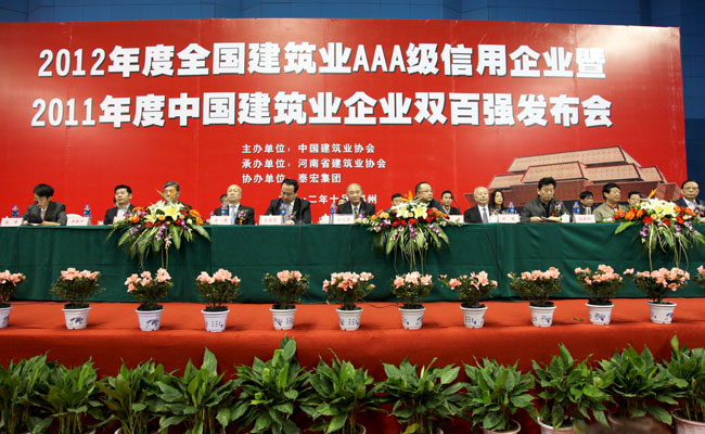 2012年度全國建筑業AAA級信用企業暨2011年度中國建筑業企業雙百強發布會會場