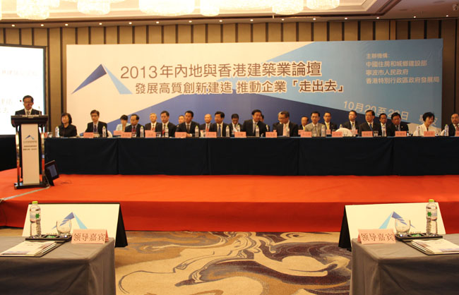 2013年內地與香港建筑業論壇10月21日在寧波舉行,來自內地和香港的300多名代表,就當前內地與香港建筑業加強合作、發展高質創新建造、推動企業“走出去”展開研討。