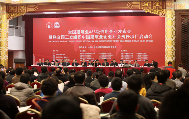 2月21日,由中國(guó)建筑業(yè)協(xié)會(huì)舉辦的建筑業(yè)AAA級(jí)信用企業(yè)發(fā)布會(huì)暨聯(lián)合國(guó)工業(yè)發(fā)展組織中國(guó)建筑業(yè)企業(yè)社會(huì)責(zé)任項(xiàng)目啟動(dòng)會(huì)在北京召開(kāi)。會(huì)議向北京城建集團(tuán)有限責(zé)任公司等93家企業(yè)頒發(fā)了2013年度建筑業(yè)AAA級(jí)信用企業(yè)證書(shū),并啟動(dòng)了由中國(guó)建筑業(yè)協(xié)會(huì)、聯(lián)合國(guó)工業(yè)發(fā)展組織、商務(wù)部中國(guó)國(guó)際經(jīng)濟(jì)技術(shù)交流中心合作開(kāi)展的中國(guó)建筑業(yè)企業(yè)社會(huì)責(zé)任項(xiàng)目。中國(guó)建筑業(yè)協(xié)會(huì)會(huì)長(zhǎng)鄭一軍、住房城鄉(xiāng)建設(shè)部建筑市場(chǎng)監(jiān)管司司長(zhǎng)吳慧娟等出席會(huì)議并講話。各地區(qū)建筑業(yè)協(xié)會(huì)、有關(guān)行業(yè)建設(shè)協(xié)會(huì)、有關(guān)建筑業(yè)企業(yè)的代表及國(guó)內(nèi)外知名專家等共300余人參會(huì)。會(huì)議由中國(guó)建筑業(yè)協(xié)會(huì)副會(huì)長(zhǎng)徐義屏主持。