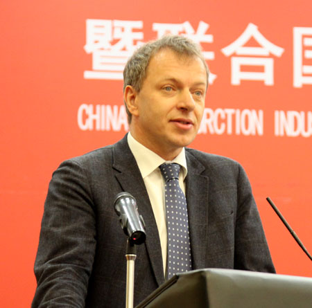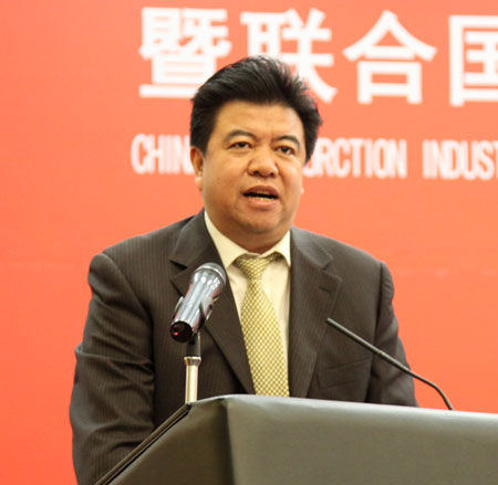 會(huì)上,中國(guó)建筑業(yè)協(xié)會(huì)副會(huì)長(zhǎng)兼秘書(shū)長(zhǎng)吳濤、聯(lián)合國(guó)工業(yè)發(fā)展組織清潔和可持續(xù)生產(chǎn)處處長(zhǎng)熱內(nèi)、商務(wù)部中國(guó)國(guó)際經(jīng)濟(jì)技術(shù)交流中心副主任王偉黎、中國(guó)國(guó)家認(rèn)證認(rèn)可監(jiān)督管理委員會(huì)認(rèn)可監(jiān)管部主任趙宗勃、中國(guó)建筑股份有限公司董事長(zhǎng)易軍、中信建設(shè)有限責(zé)任公司總經(jīng)理袁紹斌、中國(guó)鐵路工程建設(shè)協(xié)會(huì)秘書(shū)長(zhǎng)解高潮分別代表項(xiàng)目的承辦和支持單位做大會(huì)致辭。新蒲建設(shè)集團(tuán)有限公司總經(jīng)理王麥對(duì)代表2013年度全國(guó)建筑業(yè)AAA級(jí)信用企業(yè)做了發(fā)言。