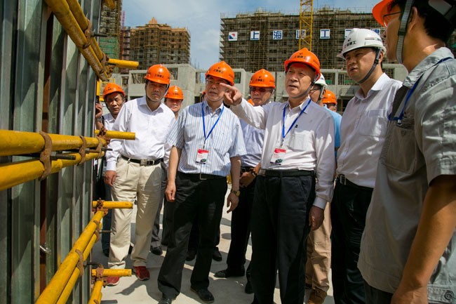 在與企業(yè)有關(guān)人員座談后,吳濤副會長兼秘書長首先對上海建工和項目部為保障工程質(zhì)量和安全采取的有效措施和管理創(chuàng)新,以及應(yīng)用PC體系和BIM技術(shù)大力推進(jìn)建筑產(chǎn)業(yè)現(xiàn)代化等工作給予了充分肯定。并指出,“工程質(zhì)量治理兩年行動”是住房城鄉(xiāng)建設(shè)部為規(guī)范建筑市場秩序,保障工程質(zhì)量,促進(jìn)建筑業(yè)持續(xù)健康發(fā)展而開展的一項重要工作,中國建筑業(yè)協(xié)會在認(rèn)真貫徹落實兩年行動有關(guān)要求的同時,積極配合住房城鄉(xiāng)建設(shè)部開展了“工程質(zhì)量治理兩年行動萬里行”活動。從已完成的采訪宣傳效果可以看出,萬里行活動充分發(fā)揮媒體的輿論宣傳作用,樹立正面典型,弘揚(yáng)正能量,在交流工程質(zhì)量管理先進(jìn)經(jīng)驗和打造企業(yè)質(zhì)量品牌等方面發(fā)揮了積極作用。