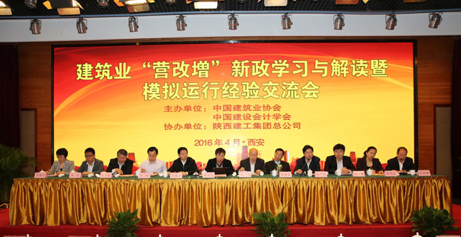 建筑業“營改增”實施在即,為幫助企業全面了解有關政策,切實做好相關準備,推動“營改增”工作順利、平穩、健康開展,由中國建筑業協會與中國建設會計學會主辦,陜西建工集團總公司協辦的建筑業“營改增”新政學習與解讀暨模擬運行經驗交流會于4月7日在古城西安隆重召開。中國建筑業協會副會長兼秘書長吳濤,中國建設會計學會會長秦玉文,財政部稅政司流轉稅處郭強,住房城鄉建設部相關業務司的領導同志,陜西省建筑業協會會長許龍發,陜西建工集團總公司董事長劉耀華,陜西省建筑市場管理辦公室主任茹廣生, 陜建工總會計師卞顯敏等領導出席會議。中國建設會計學會副會長阮智勇、中國建筑業協會副秘書長王秀蘭主持會議。來自全國各省、自治區、直轄市的建筑企業相關人員400余人參加會議。