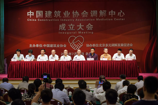 2016年7月23日,全國建筑行業首家具有行業調解職能的專業調解機構——“中國建筑業協會調解中心”在京成立。中國建筑業協會副會長兼秘書長吳濤、專家委員會副主任徐義屏,北京多元調解發展促進會會長翟晶敏、中國國際經濟貿易仲裁委員會副秘書長李虎、北京仲裁委員會處長丁建勇、中國中鐵股份有限公司董事會秘書兼總法律顧問于騰群以及法院系統的老領導出席會議。全國各地大型建筑業企業的法律部負責人、法律顧問,建設單位、房地產企業及勘察設計、工程造價、咨詢檢測、科研院校和律師界代表200多人參加會議。中國建筑業協會副秘書長王秀蘭主持會議。
