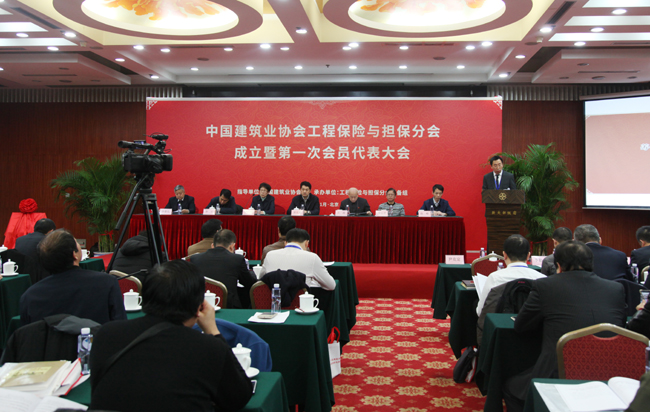2017年1月16日,中國建筑業協會工程保險與擔保分會成立暨第一次會員代表大會在北京召開。住房城鄉建設部工程質量安全監管司副司長曾憲新、質量處處長廖玉平,建筑市場監管司招投標處處長齊心,中國建筑業協會副會長兼秘書長吳濤、副秘書長李蓬和趙峰出席會議;來自各企事業單位的代表和新聞媒體的同志共200余人參加了會議。會議由中國建筑業協會副秘書長李蓬主持。