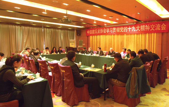 會議學習了黨的十九大工作報告要點和住房城鄉建設部王蒙徽部長關于學習貫徹十九大精神的要求。青年黨員代表和協會黨總支各支部代表結合自身工作交流了學習十九大報告的心得體會。