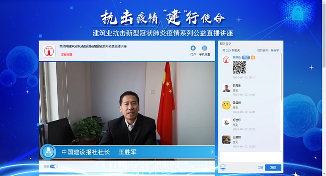 第四期公益直播講座聯(lián)合中國(guó)建設(shè)報(bào)社共同舉辦,中國(guó)建筑業(yè)協(xié)會(huì)副會(huì)長(zhǎng)兼秘書(shū)長(zhǎng)劉錦章和中國(guó)建設(shè)報(bào)社社長(zhǎng)王勝軍分別致辭,中國(guó)建筑第二工程局有限公司、中國(guó)中鐵四局集團(tuán)有限公司、中交第二航務(wù)工程局有限公司和江蘇中南建筑產(chǎn)業(yè)集團(tuán)有限責(zé)任公司等四家企業(yè)分別交流了在疫情期間信息宣傳工作方面的典型經(jīng)驗(yàn)。