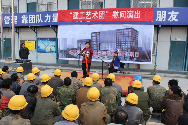 近日,北京建工集團工會副主席張利帶領“建工藝術團”一行20余人來到北京建工四建公司承建的國瑞中心工地,為建設者們奉獻了一臺由集團職工精心排演的文藝節(jié)目,慰問參與該重點工程建設的200余名農民工和一線職工。