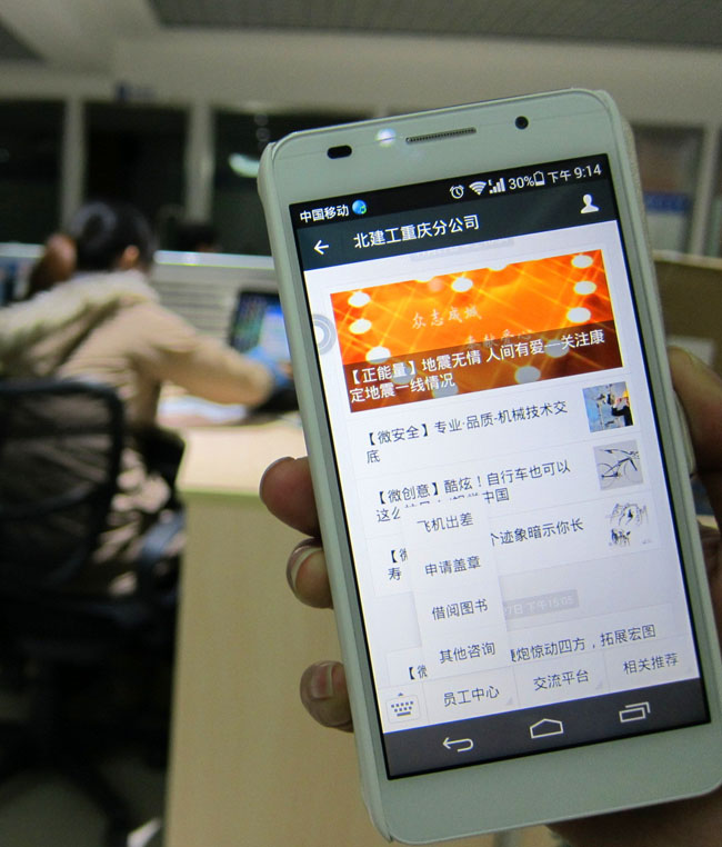 北京建工四建重慶分公司官方微信,一經推出就得到了廣大員工的支持,每日同官方微博同步跟新內容,讓員工及合作伙伴不論在線上還是移動終端都能第一時間了解重慶分公司資訊。 下一步,北京建工四建重慶分公司將繼續拓展深化企業宣傳的廣度和深度,在信息量達到一定程度時,適時推出重慶分公司官方網站,踏上企業文化宣傳新征程。(供稿人 崔瑞清 代玉)