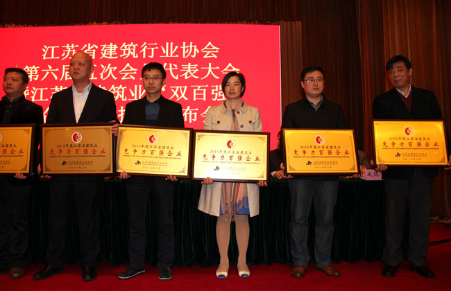 3月30日—31日,由江蘇省建筑行業(yè)協(xié)會組織召開的江蘇省建筑行業(yè)協(xié)會第六屆五次會員代表大會暨2015年度江蘇省建筑業(yè)“雙百強(qiáng)”企業(yè)評價(jià)排名發(fā)布會在南京雙門樓賓館召開。江蘇中南建筑產(chǎn)業(yè)集團(tuán)有限責(zé)任公司作為副會長單位受邀參會,公司執(zhí)行董事陶燕出席會議。本次活動期間,江蘇中南建筑產(chǎn)業(yè)集團(tuán)有限責(zé)任公司榮獲了2015年度江蘇省建筑業(yè)競爭力百強(qiáng)企業(yè)榮譽(yù)稱號,并且排名名列前茅。