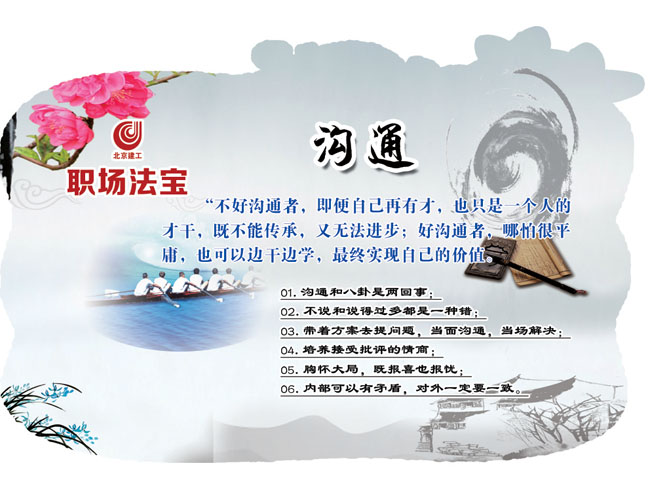 近日,在北京建工四建公司各單位微信朋友圈中,大家都在踴躍推薦自己讀過的好書和好文章,分享收獲體會,其中該公司天津魯能七號院項目部還把黨支部書記馮舜推薦的一篇《你靠什么在單位立足?》文章制作成“職場寶典展板”張掛在辦公區走廊上,12塊展板包括溝通、成本、團隊、感恩、責任等內容,引起了項目部青年員工的強烈共鳴。為全面深化學習型企業文化建設,在全體員工中樹立“讀書豐富生活,知識改變人生”的理念,進一步提升員工隊伍素質建設,鼓勵員工保持和養成良好的閱讀習慣,在公司形成一種“我要閱讀,樂于分享”的良好氛圍,從2017年起北京建工四建公司黨委正式啟動“閱讀與分享”讀書系列活動。