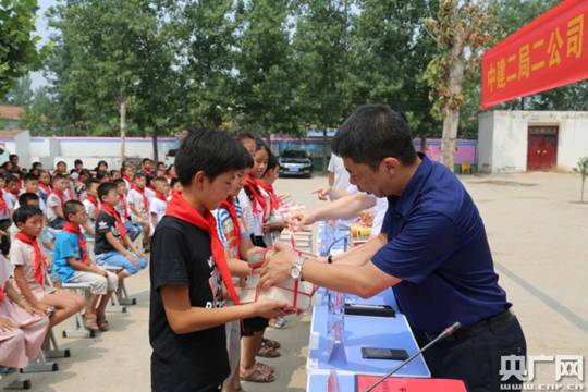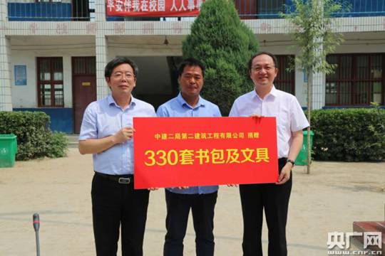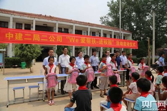 一場(chǎng)由中建二局第二建筑工程有限公司(下面簡(jiǎn)稱(chēng)中建二局二公司)與蘭考縣教體局聯(lián)合開(kāi)展的“we愛(ài)幫扶—進(jìn)校園”活動(dòng)啟動(dòng)儀式在十點(diǎn)整在此拉開(kāi)序幕。中建二局二公司的員工們親自將2000冊(cè)課外讀物、100套課桌椅、300多個(gè)書(shū)包文具送到了孩子們的手中,并幫助他們安裝好乒乓球桌,耐心指導(dǎo)糾正孩子們的橫直拍握法,企業(yè)負(fù)責(zé)人鄭重接過(guò)由公司會(huì)同當(dāng)?shù)卣畬?shí)地走訪調(diào)查最終確定的貧困生“一對(duì)一”幫扶名單,并裝進(jìn)特別準(zhǔn)備的檔案袋,并現(xiàn)場(chǎng)封存好。