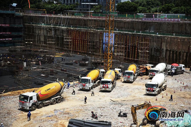 7月9日,由北京建工集團(tuán)施工的428米的海南第一高樓——海口雙子塔•南塔工程塔樓筏板基礎(chǔ)單次9.6萬噸近4萬方混凝土澆筑施工任務(wù)拉開序幕。下午13時36分,海航地產(chǎn)總裁楊猛先生一聲令下,第一車混凝土通過溜槽奔馳而下,海口雙子塔•南塔大體積混凝土澆筑正式開始,全球六大傳媒集團(tuán)之一Havas、央視9頻道、鳳凰網(wǎng)等多家媒體親臨現(xiàn)場實況轉(zhuǎn)播報道這項“超級工程”。