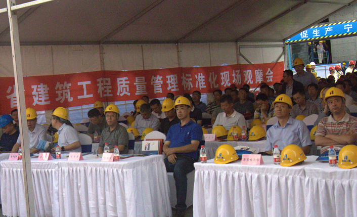 重點介紹項目部以前期技術(shù)策劃為依托,標(biāo)準(zhǔn)化執(zhí)行為理念。貫穿整個施工節(jié)拍,以安全策劃為標(biāo)準(zhǔn),積極響應(yīng)綠色施工理念,執(zhí)行標(biāo)準(zhǔn)化防護(hù);以質(zhì)量策劃為標(biāo)準(zhǔn),落實住建部《開展工程質(zhì)量專項治理兩年行動及工程質(zhì)量和隊伍素質(zhì)“雙提升”三年行動》文件。把質(zhì)量、安全擺在首要位置。待別是三道螺桿模板加固體系、衛(wèi)生間降板定型化、水泥石膏粉刷工藝、地下室模板整板免開孔工藝外架全鋼整體爬架等使大家大開眼界,許多同行感嘆,這次觀摩收獲巨大,讓我們看到了行業(yè)樣板。