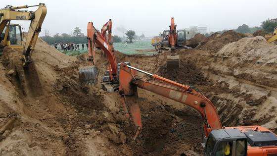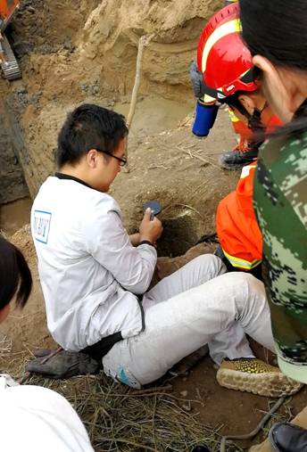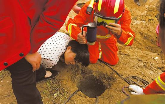10:40左右,呂斌他們到達救援現(xiàn)場時,當?shù)氐墓病⑾馈⒓本鹊炔块T人員也陸續(xù)趕到了現(xiàn)場,救援人員正向井中輸送氧氣,消防人員正在積極研究營救方案。但因井直徑約有40cm左右,成人難以進入,時間急迫,必須采取大型機械對井周圍進行土方開挖。呂斌急忙說,我們工地上有幾臺挖掘機和裝載機,可馬上全部調(diào)過來全力配合救援工作。經(jīng)得現(xiàn)場消防指揮人員的同意后,呂斌立刻給工地上的生產(chǎn)副經(jīng)理王鑫打了個電話,說清原由后,讓現(xiàn)場其他管理人員放下手頭工作,帶上工人和工程機械火速趕過來救人。