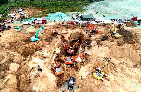 16:20分,開挖深度達到12米,積水出現(xiàn),現(xiàn)場開啟抽水設備,與挖掘機械穿插作業(yè)。在挖掘即將到達墜落男孩所在深度時,靠近深井周圍的砂層突然發(fā)生垮塌,由于作業(yè)面空間受限,救援難度急劇增加。此時距事發(fā)已近7個小時,雖然從井口一直在向男孩輸送氧氣、食物、水作為能量補給,但是被困時間過長,現(xiàn)場每個人員心急如焚。