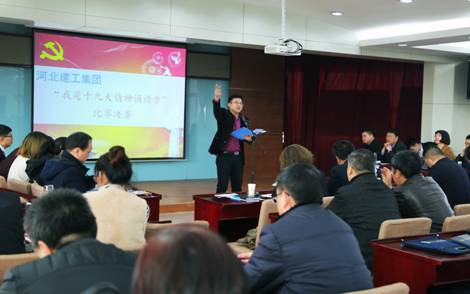 12月1日下午,為進一步學習宣傳貫徹黨的十九大精神,準確領會把握十九大精神的思想精髓、核心要義,河北建工集團黨委、團委聯合舉辦了“不忘初心跟黨走 砥礪奮進建新功——我是十九大精神誦讀者”比賽活動。集團母子公司36名選手參加現場比賽,經過激烈角逐,評出了一、二、三等獎。集團黨委副書記張慶虎及母子公司近百名干部職工觀看了比賽。