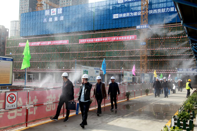 近日,西安市建設工地及兩類企業鐵腕治霾專項整治常態治理現場會,在陜建八建集團國家大學科技園科創孵化基地項目召開。西安市建委黨組書記、主任苗寶明作重要講話,市建委副主任高省安主持會議。西安市鐵腕治霾辦副主任張超,雁塔區副區長張軍,市城改辦副主任李根成,陜建八建集團黨委書記、董事長劉鵬慧等領導出席會議。