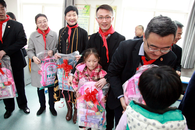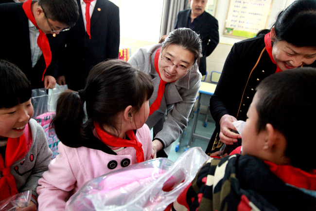 隨后大峪口小學何校長對大家的到來及善舉表達了感謝,并向企業贈送了愛心錦旗,孩子們為大家系上了紅領巾,鮮艷的紅領巾同大家的愛心一起,飄在胸前,暖在心中。