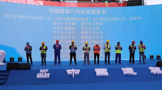 一線作業(yè)人員代表共同宣讀《中國建筑行為安全倡議書》