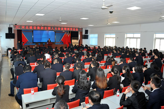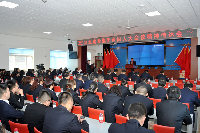 3月24日上午,河北建設集團股份有限公司組織召開電視電話會議,傳達貫徹落實習近平總書記重要講話和“兩會”精神。十三屆全國人大代表、公司董事長李寶忠就“兩會盛況、習近平總書記重要講話、政府工作報告、憲法修改”等八方面在會議上做了傳達。