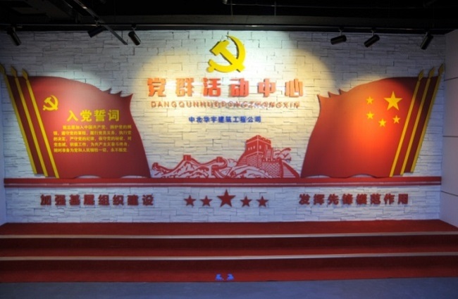 為全面貫徹落實黨的十九大精神和習近平新時代中國特色社會主義思想,銘記光輝歷史、傳播紅色文化、回報地區人民群眾的支持厚愛。2018年6月,中北華宇建筑工程公司投資建成了黨群活動中心。