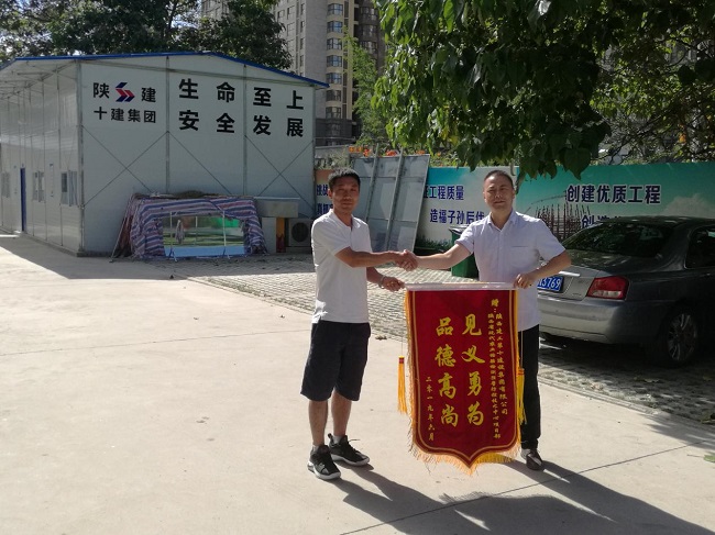 7月6日,家住西安城郊的雷先生來到陜建十建集團陜西現代農業檢驗檢測預警防控技術中心項目部,送來了一面寫著“見義勇為,品德高尚”的錦旗,以感謝項目部員工在危急時刻伸出援手。