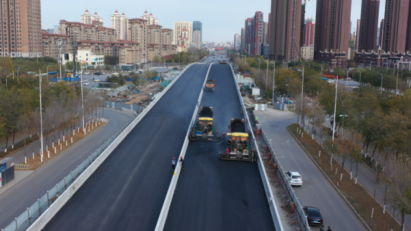 金陽大街跨線橋工程是整個南部快速路第一個完成瀝青攤鋪的工程,對整個工程乃至沈陽南部快速路工程來說都是一個重要節點。瀝青路面攤鋪完成后,將進行路面伸縮縫安裝、交通標線施劃、隔音屏安裝等后續工作,預計在年底前金陽大街跨線橋工程將具備通車條件。