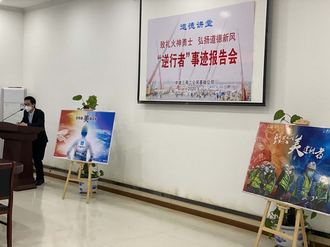 “陽(yáng)光總有照射不到的地方,但我相信黑暗總會(huì)過(guò)去,黎明終究會(huì)到來(lái)......”這是基礎(chǔ)公司參加火神山醫(yī)院建設(shè)的一名職工給大家分享自己的參建經(jīng)歷和感受。5月7日,中建三局二公司基礎(chǔ)公司襄陽(yáng)片區(qū)組織開(kāi)展了“道德講堂•逆行者事跡報(bào)告會(huì)”暨復(fù)工復(fù)產(chǎn)集體宣誓活動(dòng),片區(qū)各項(xiàng)目40余名黨員和職工代表一起聆聽(tīng)和感受5名“逆行”勇士的精彩分享。
