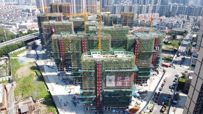 在C區工地處,2幢25層高的大樓上掛著“封頂大吉”的巨大橫幅。“C區原來是一個小山丘,大概有8米高,施工時只能先派挖機把小山丘犁平破碎,還要再向下挖入4米多深,才能開始建設。”C區工地主管劉偉昌說道。去年僅完成這些工作,花費了項目部4個月的時間,今年新冠受疫情影響,致使晚開工了兩個月。如何趕上耽擱的施工進度成了當前項目部最棘手的問題,以敢打硬仗能打勝仗聞名的四建郝文彬管理團隊以穿插施工為主線,以勞動競賽為抓手,充分調動各參建單位積極性,貫徹落實標準化作業流程,在主體施工至5層時開始安裝施工電梯,在主體施工至7層時開始穿插施工,地下室工作面提前移交,盡量減少施工中的窩工現象,避免額外成本。