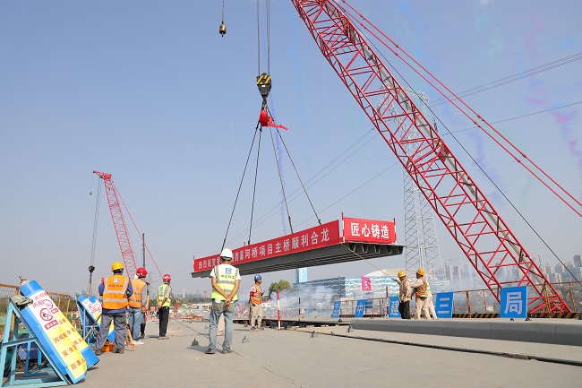 合龍儀式上,姚寬一致歡迎詞。他表示,要以最優(yōu)秀的管理團(tuán)隊(duì),最強(qiáng)大的資源配置,最過硬的責(zé)任擔(dān)當(dāng),弘揚(yáng)鐵軍作風(fēng)和工匠精神,全力以赴實(shí)現(xiàn)大橋年底通車,打造經(jīng)得起歷史檢驗(yàn)的安全工程、綠色工程、精品工程,以中建智慧、中建方案、中建力量,全力拓展浐灞生態(tài)區(qū)幸福空間,不斷滿足人民群眾對美好生活的向往。